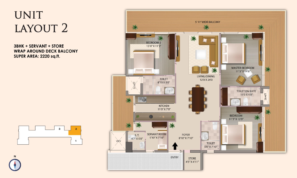 After a successful commercial launch, SPJ Vedatam now unveils its second residential phase with 138 luxury 3 BHK + Servant + Store apartments. With only 3 units + 4 lifts, triple height reception entrance, these 2220-2340 sq. ft. homes feature spacious 5.11-feet lavish wrap around balconies and a modern glass façade rising 30 storeys.
